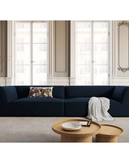 Canapé velours Charles 4 Places bleu foncé - 302x93x69 cm