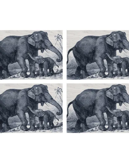 4 Sets de table rectangulairess éléphant bleus - 30x45 cm
