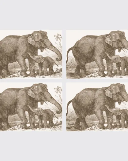 4 Sets de table rectangulaires éléphants sépia - 30x45 cm