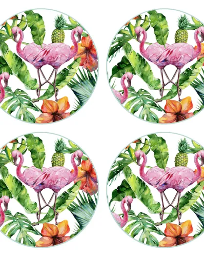4 Sets de table ronds flamants tropicaux 3 multicolores - D.40 cm