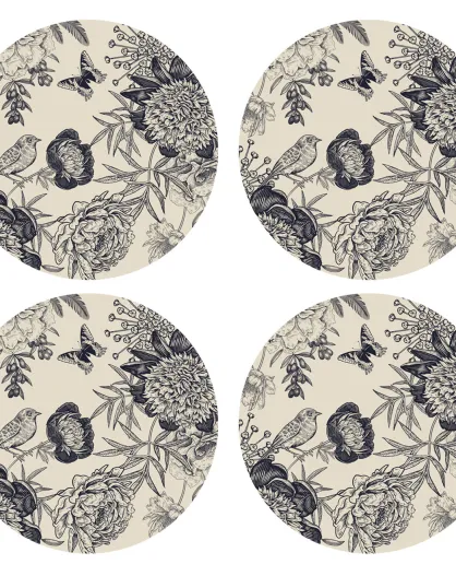 4 Sets de table ronds oiseau 3 multicolores - D.40 cm
