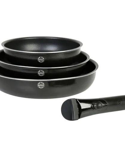 3 Poêles et un manche Sitramovible Family induction noires - D.20/24/28 cm