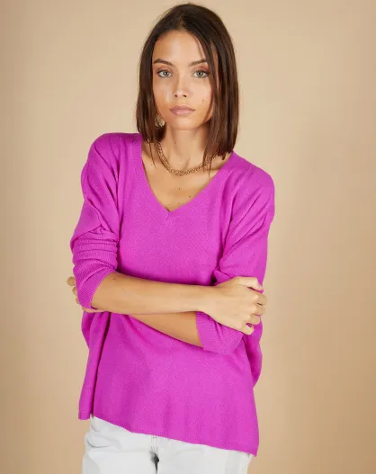 Pull poncho 100% Cachemire Emma col V violet fluo