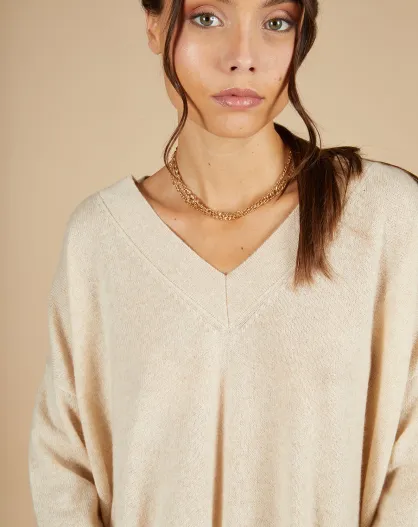 Pull 100% Cachemire Iris Col V profond oversize blé