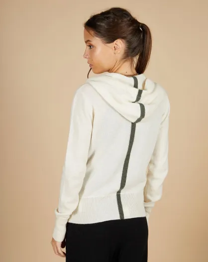 Gilet à capuche 100% Cachemire Blanche blanc cassé/kaki