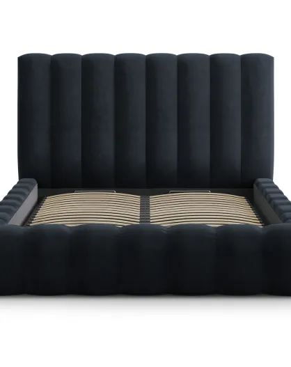 Lit Coffre en Velours avec Tête de Lit Gina bleu foncé - 200x200 cm