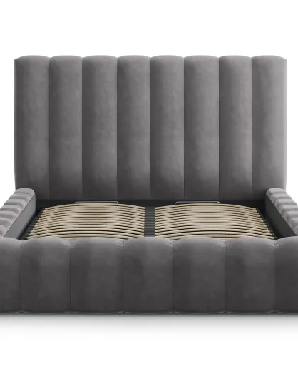 Lit Coffre en Velours avec Tête de Lit Gina gris - 200x200 cm