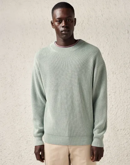 Pull en Maille côtelée mélangée Avar col rond vert de gris clair