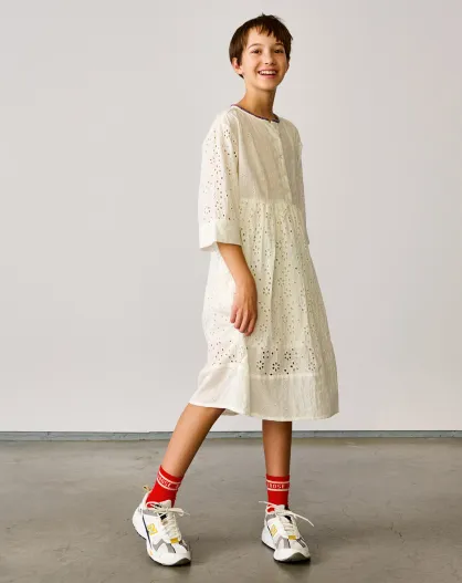 Robe mi-longue en Coton Hoboes broderies anglaises écrue