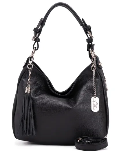 Sac porté épaule en Cuir Fiorella noir - 30x27x9 cm