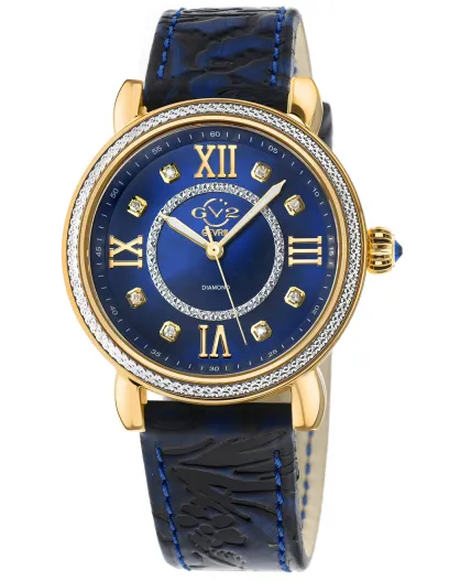 Montre Marsala Femme Quartz en Cuir & Diamants 0.4 ct bleue