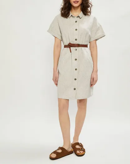 Robe en Lin & Coton Cebane rayé beige/kaki