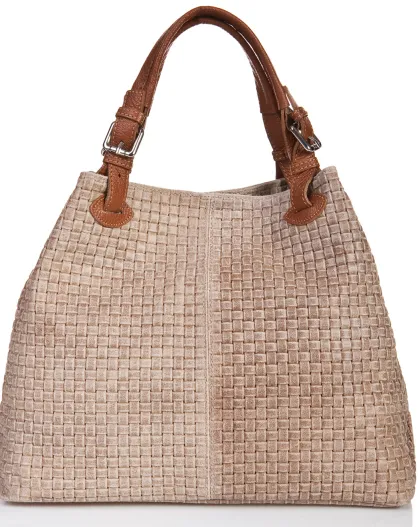 Sac à main en Cuir Aria taupe - 34x17x30 cm