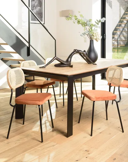 2 Chaises velours dossier rotin Albane orange - 48x51x81.5 cm