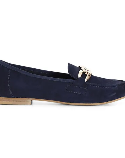 Mocassins en Velours de Cuir Fino bleu marine