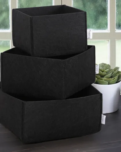 12 Boîtes de rangement noires - 10x10x10x9.5 cm