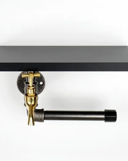Étagère murale & Dérouleur BoruRaf021 noir/noisette - 30x14x12 cm