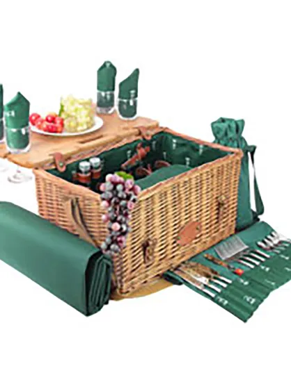 Panier à pique-nique en Osier & Cuir Saint Honoré vert - 4 personnes