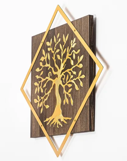 Décoration murale en bois noyer/doré - 54x54 cm
