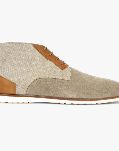 Derbies montantes en Toile et Velours de Cuir Renald beiges