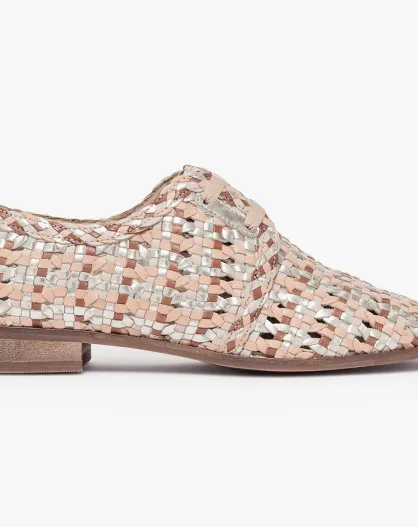 Derbies en Cuir tressé Caroline cognac/multicolore