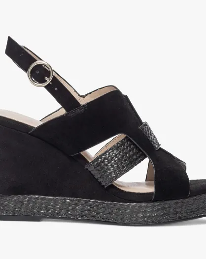 Sandales compensées en Velours de Cuir Yacina noires - Talon 9 cm