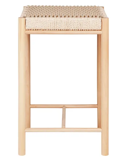 Tabouret haut en peuplier avec assise en osier Abano naturel - 42x42x66.5 cm