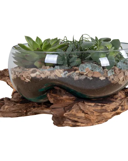 Goutte d'eau en teck et verre San Marino naturel - 26x26x20 cm