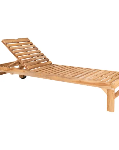 Chaise longue en teck Andorra naturel - 62x200x37 cm