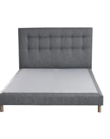 Sommier tapissier + tête de lit capitonnée Crépuscule gris souris - 140x190 cm