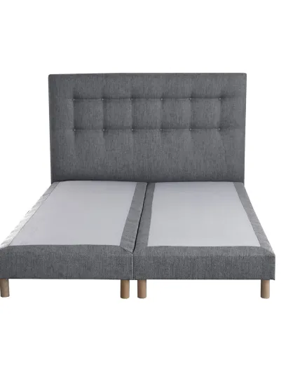 Sommier tapissier + tête de lit capitonnée Crépuscule gris souris - 160x200 cm