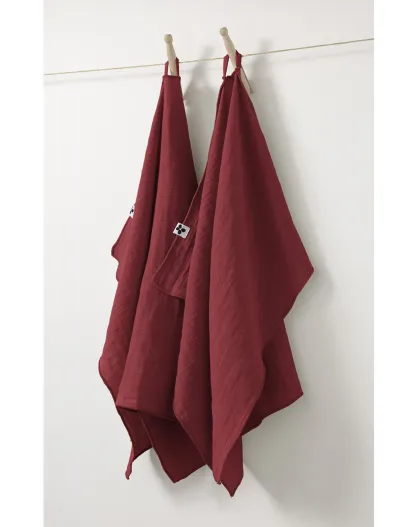 2 Essuie-mains en Gaze de coton Gaïa lie de vin - 50x70 cm