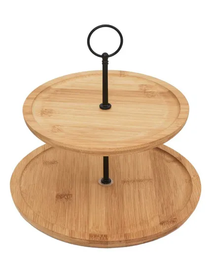 Présentoir 2 étages noir/marron - D.23.5x25 cm