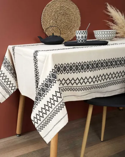 Nappe en coton ethnique noir/beige - 140x250 cm