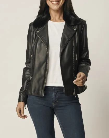 Veste en Cuir Perfecto Col Lilou noire