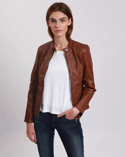 Veste en Cuir Lou cognac