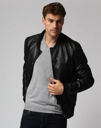 Blouson en Cuir Teddy Lino noir