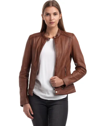 Veste en Cuir Lune cognac