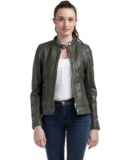 Veste en Cuir Lune kaki