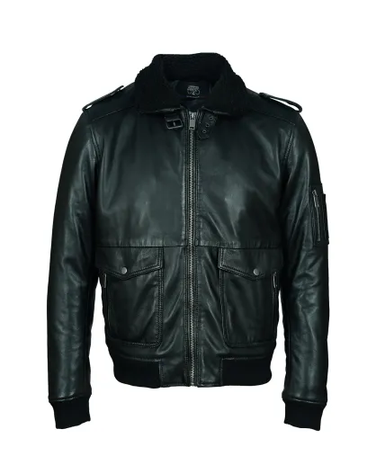 Blouson en Cuir Col Liman noir