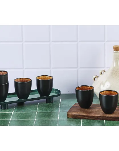6 Tasses en Grès Iris beige/marron - 15 cl