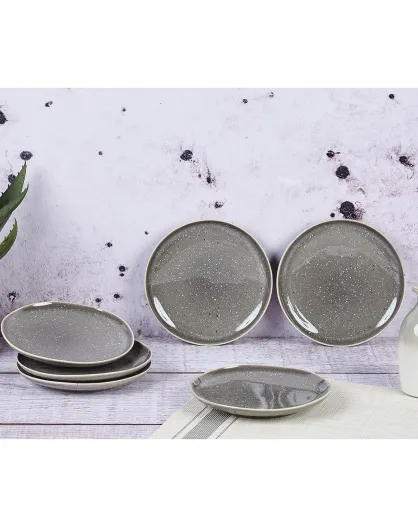 6 Assiettes en Grès Stellar gris/anthracite - D.18 cm