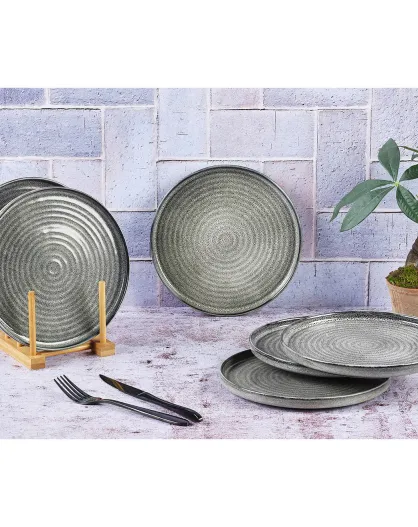 6 Assiettes en Grès dessert Zen gris/bleu - D.22 cm