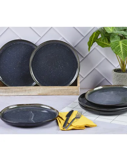 6 Assiettes plates en Grès Iris bleu foncé - D.26 cm