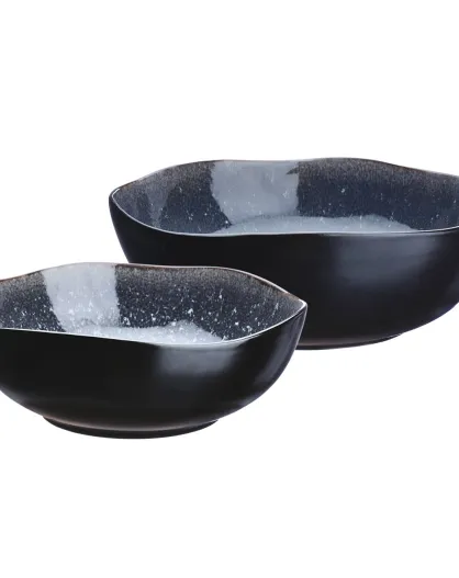 2 Saladiers en Grès Iris bleu foncé - 24x8.5/28.5x10 cm