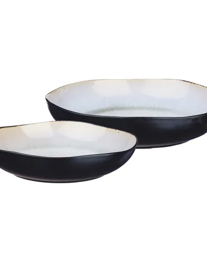 2 Corbeilles à fruits en Grès Iris blanc/ivoire - 27.5x6/32.5x6.5 cm