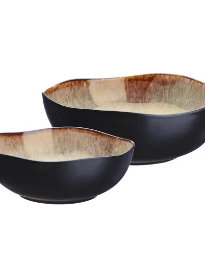 2 Saladiers en Grès Iris beige/marron - 24x8.5/28.5x10 cm