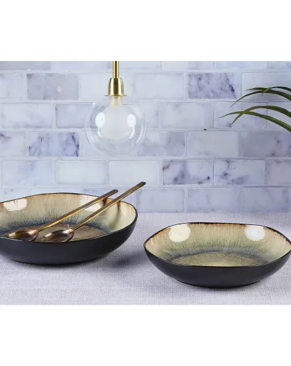 2 Saladiers en Grès Iris blanc/ivoire - 24x8.5/28.5x10 cm