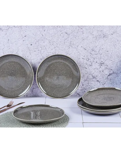6 Assiettes plates en Grès Stellar gris/anthracite - D.27 cm