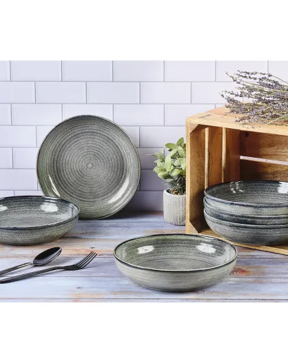 6 Assiettes creuses en Grès Zen gris/bleu - D.22.5 cm